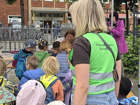 Tanja von Malottki, Leiterin des Fröbel-Kindergartens Ermlandweg in Münster-Nord, erklärte sich an diesem besonderen Tag unter anderem auch für das Fotografieren zuständig und sagte: „Der MINTmachtag ist für uns jedes Jahr eine großartige Gelegenheit zu zeigen, wie eine gute frühe Bildung im pädagogischen Alltag gelingen kann und was unsere Fachkräfte täglich in unseren Einrichtungen leisten. Bei Fröbel ist nämlich jeder Tag ein Forschertag – und das sollen auch alle sehen!“