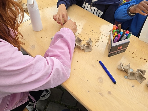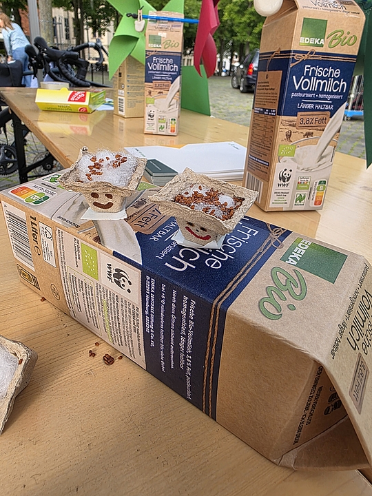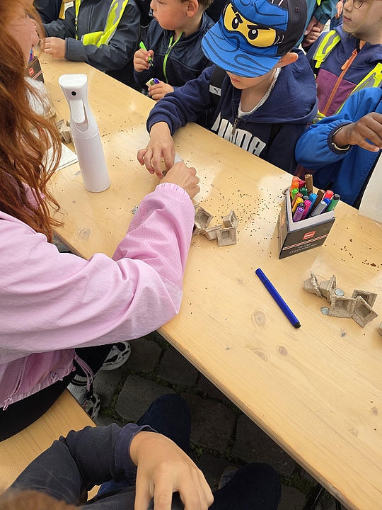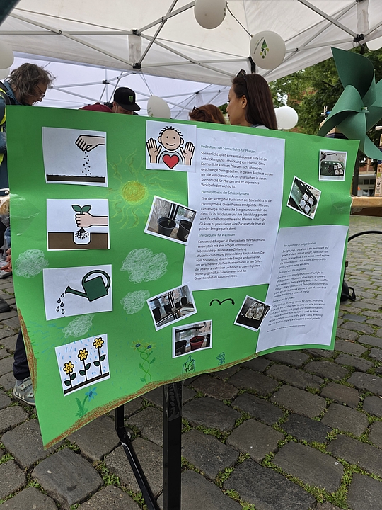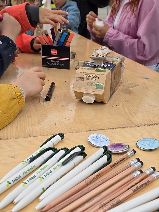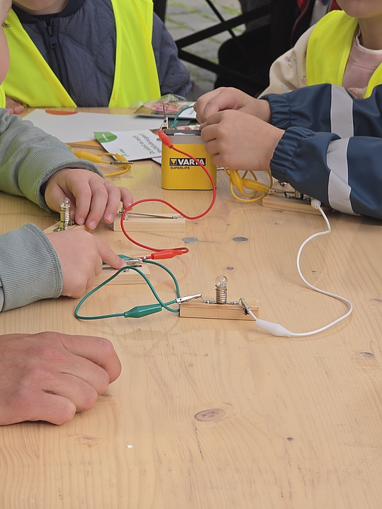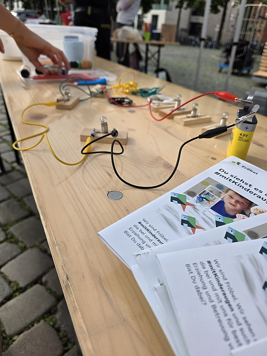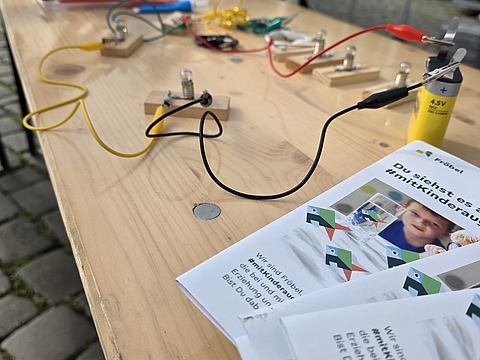 Im nunmehr dritten Jahr in Folge zeigten fünf Münsteraner Fröbel-Kindergärten ihre spannenden Experimente und luden zum Mitmachen ein: Im Fröbel-Kindergarten Sonnenstraße gingen die Kinder etwa der Frage „Was schwimmt, was schwimmt nicht?“ nach. Durch vorheriges Raten und anschließendes Testen erkundeten sie spielerisch das Konzept der Dichte von Gegenständen in Wasser. „Tritt dich zu Licht“ war das Motto im Fröbel-Kindergarten Ermlandweg. Hier erfuhren junge Forschende, wie mit Hilfe eines Fahrradgenerators aus Bewegung elektrisches Licht entstehen kann. Kreativ wurden auch die Kinder aus den Fröbel-Kindergärten Am Emmy-Herzog-Platz, Zentrum Nord und Drostebusch: Begleitet durch pädagogische Fachkräfte, bastelten sie zum Beispiel Windräder und Windmühlen – eine kreative Auseinandersetzung mit der Kraft des Windes und erneuerbaren Energien!