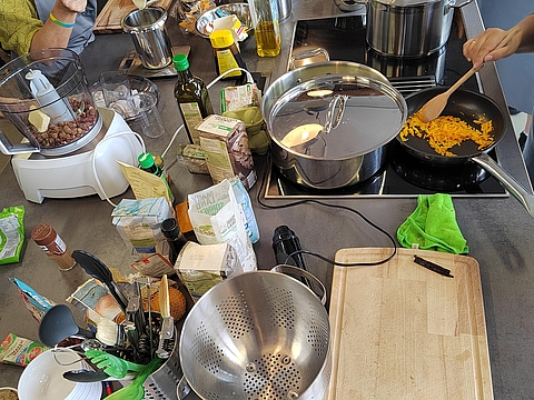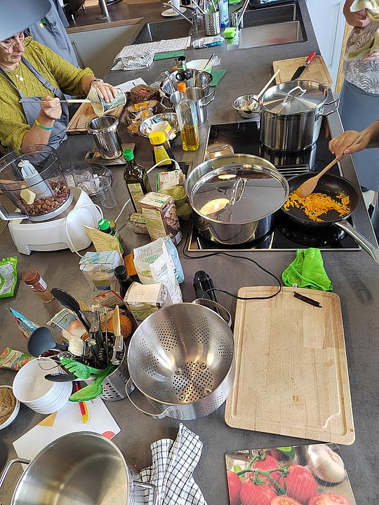 Im November fand in der Fröbel-Geschäftsstelle in Köln die Kochschulung „Clever Kochen“ statt. Küchenkräfte aus mehreren Einrichtungen in Nordrhein-Westfalen vertieften dort ihr Wissen über eine kindgerechte, gesunde und nachhaltige ovo-lakto-vegetarische Ernährung. Der Schwerpunkt lag auf der Frage, wie sich pflanzenbasierte Kostformen ohne Mehraufwand oder Kostensteigerung in den Kita-Küchen umsetzen lassen.