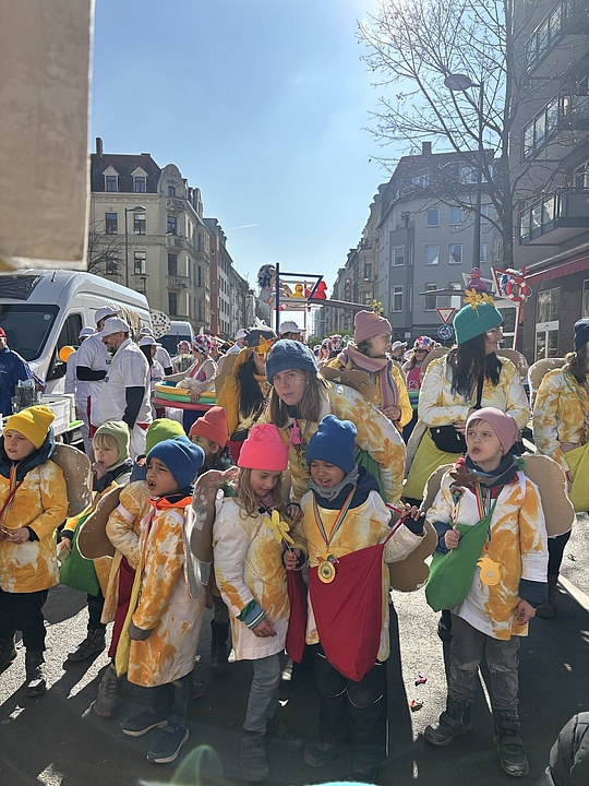 Nach 8,5 km voller Musik, Farben und Jubel endete der farbenfrohe Zug – aber nicht die Begeisterung! Zum Abschluss gab es für alle eine wärmende Suppe im Fröbel-Kindergarten Eifelstraße – und viele strahlende Gesichter, die sich schon jetzt auf den nächsten Karneval freuen.