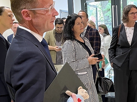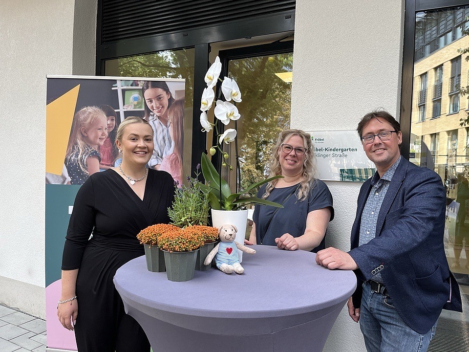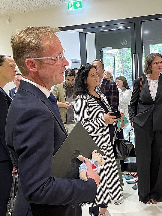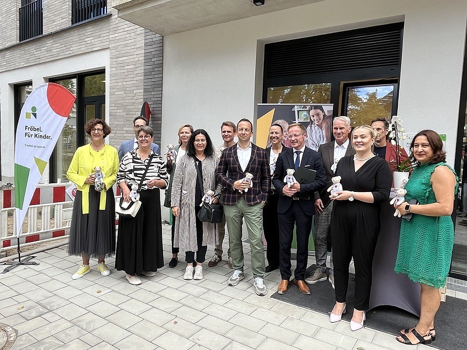 Fröbel-Geschäftsleiterin Maryam Dalir zollte allen beteiligten Unternehmen, Institutionen „und insbesondere meiner fantastischen Fröbel-Mannschaft“ auf eine besondere Art ihren Respekt für Leistung und Engagement: Alle Teilnehmenden des Kita-Rundgangs erhielten von ihr symbolisch einen kleinen Knuddel-Teddy namens "Respekti". „Es ist immer wieder ein magischer Moment, wenn ein Gebäude den Fröbel-Spirit eingehaucht bekommt“, sagte sie.