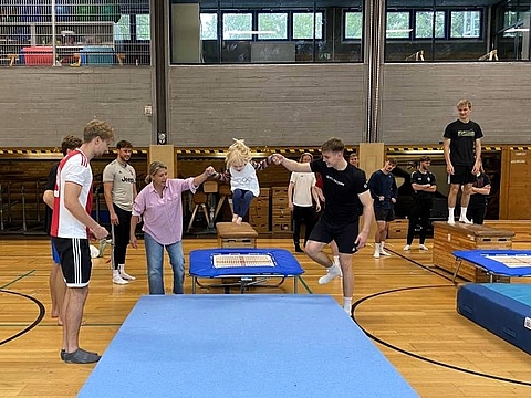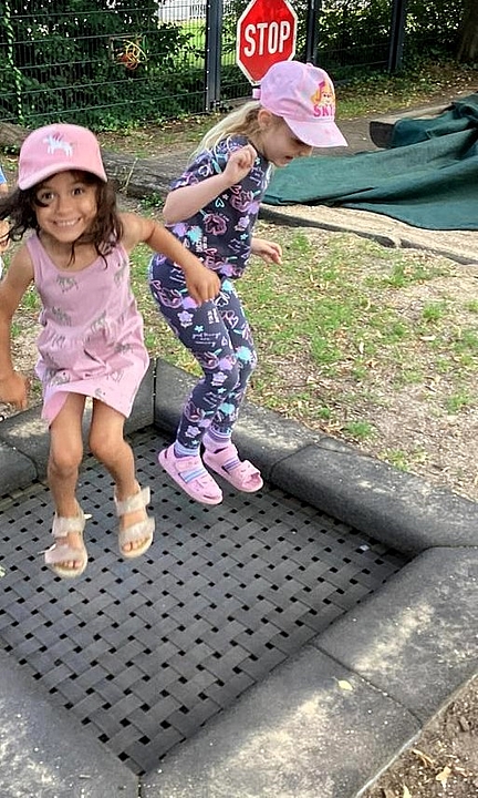 - Beim Trampolinspringen im Fröbel-Kindergarten Kleine Könige bewiesen die Kinder mit großer Freude ihre Körperspannung und flogen förmlich durch die Luft.