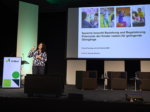 Rund 800 pädagogische Fachkräfte aus Fröbel-Kitas aus NRW diskutierten beim Fröbel-Fachtag auf der didacta in Köln, wie Kindern der Übergang in die Schule gut gelingt. Wissenschaft, Praxis und Politik setzten dabei gemeinsame Impulse für eine starke Bildungskette vom ersten Kita-Tag an.