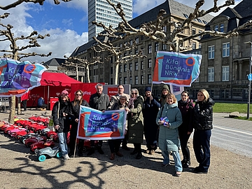 Mit unseren Partnern aus dem Kita-Bündnis NRW haben wir uns bei einem politischen Aktionstag vor der Staatskanzlei in Düsseldorf lautstark für Kinder eingesetzt.